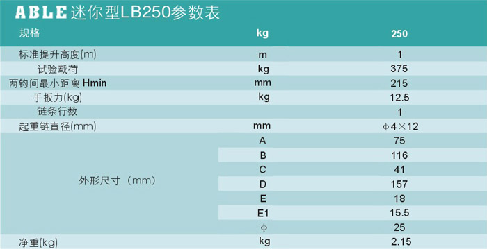 艾培爾LB250型迷你手扳葫蘆產品特點: