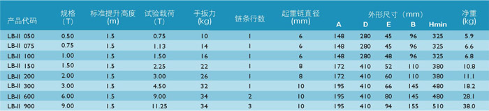 艾培爾LB-II型德國款式環(huán)鏈手扳葫蘆參數(shù):