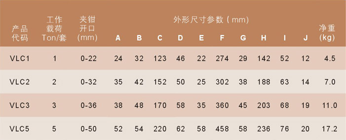 務請注意VLC吊鉗的工作載荷(WLL)是指一對吊鉗的安全承重載荷。