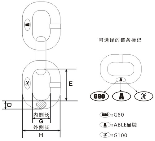艾培爾AW-8型80級(jí)高強(qiáng)度起重鏈結(jié)構(gòu)圖:
