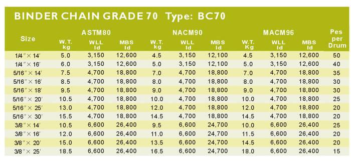 艾培爾TDC型起重鏈條70參數(shù):