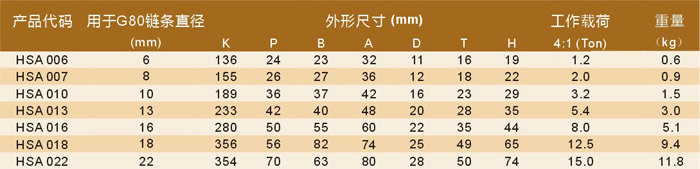 艾培爾G80歐式旋轉(zhuǎn)安全鉤HSA型參數(shù):