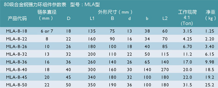 艾培爾MLA型強力環(huán)組件參數(shù):