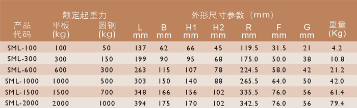 艾培爾SML型超級(jí)磁力吊參數(shù):