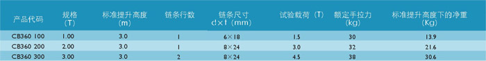 艾培爾CB360型專利型360度旋轉(zhuǎn)手拉葫蘆參數(shù):